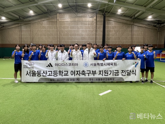 아디다스코리아(대표이사 피터곽)가 서울시와 함께하는 ‘서울아 운동하자’ 캠페인의 일환으로 서울동산고등학교 여자축구부에 지원 기금을 전달했다.