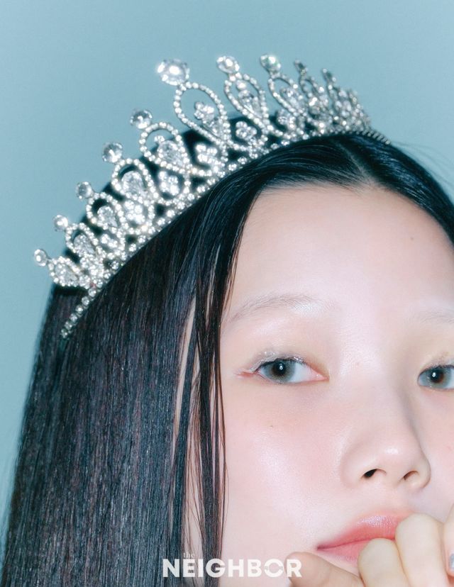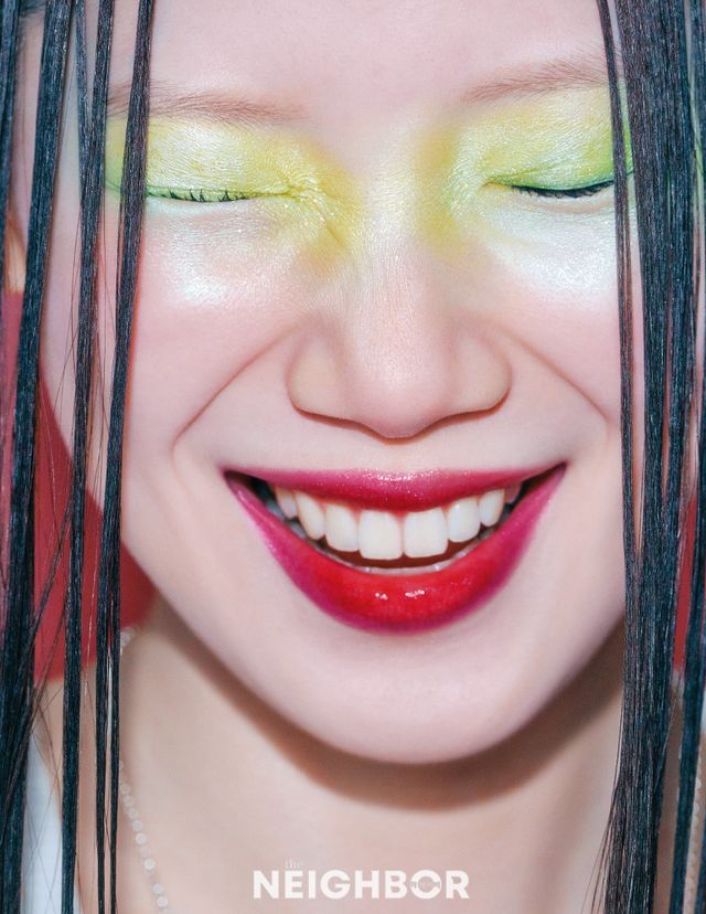 등장만으로 시선을 사로잡는 블론드 아프로 펌 헤어. 언제 어디로 튈지 모르는 미스터리하고 유머러스한 분위기를 자아낸다. 피치 브라운 톤의 치크를 눈 밑에 터치해 발랄함을 더하고, 입술 전체에 스카이블루 크림 섀도와 펄 글로스를 덧발라 잔망스러운 매력을 배가했다.