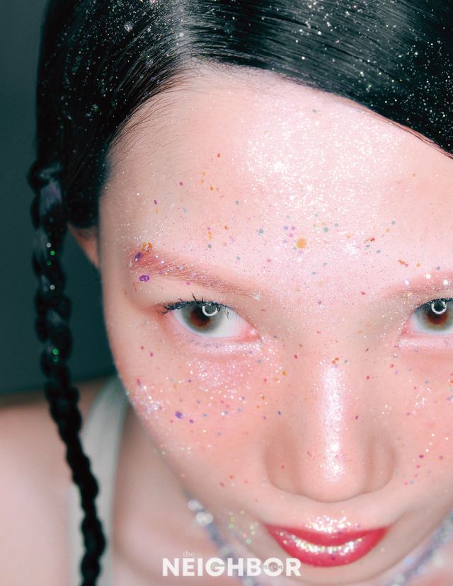 달빛 아래에서도 오색찬란하게 빛나는 존재감. 톤업 메이크업 베이스로 환하고 투명한 피부를 연출한 뒤 코럴 컬러 립앤치크로 입술과 양 볼을 맑고 청아하게 물들였다. 미세한 화이트 글리터와 오팔 컬러 글리터를 믹스해 브러시로 얼굴 전체에 흩뿌려 마무리.