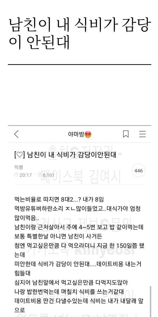 남친이 내 식비가 감당이 안된대.yeosi …