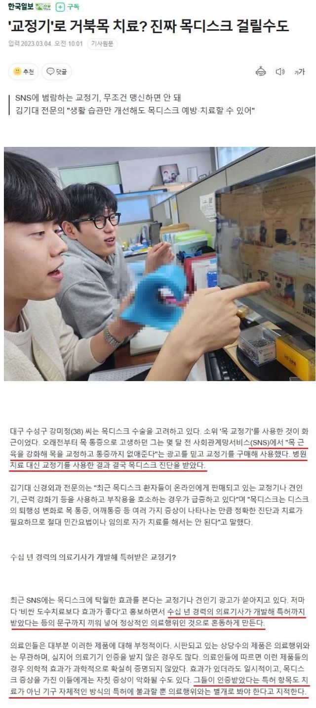 완화는 커녕 진짜 목디스크 걸릴 수 있으니 조심해서 사용해야 한다고함
