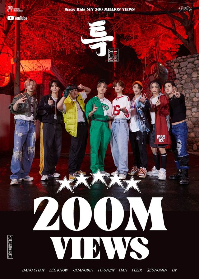 스트레이 키즈(Stray Kids)가 '특' 뮤직비디오로 통산 다섯 번째 2억 뷰 기록을 달성했다.