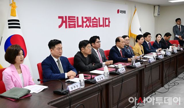 아시아투데이 이병화 기자 = 황우여 국민의힘 비상대책위원장이 3일 서울 여의도 국민의힘 중앙당사에서 열린 제4차 전당대회 선거관리위원회 임명장 수여식 및 1차회의에서 발언을 하고 있다. 오른쪽은 서병수 선거관리위원장.