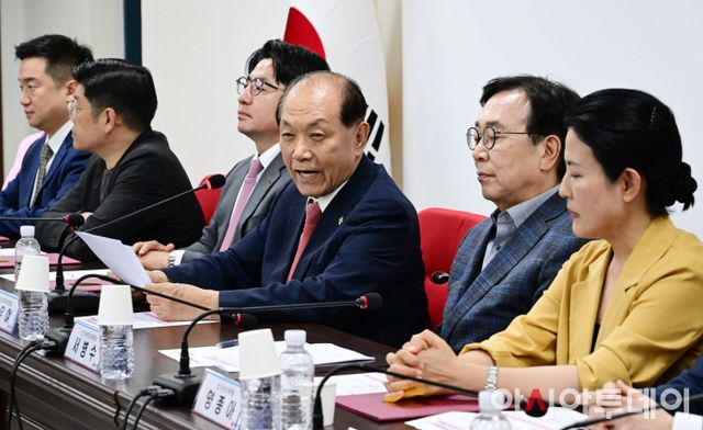 아시아투데이 이병화 기자 = 황우여 국민의힘 비상대책위원장이 3일 서울 여의도 국민의힘 중앙당사에서 열린 제4차 전당대회 선거관리위원회 임명장 수여식 및 1차회의에서 발언을 하고 있다. 오른쪽은 서병수 선거관리위원장.