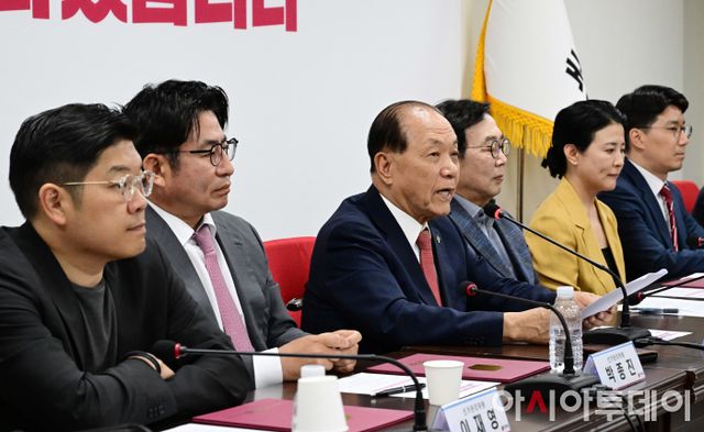 아시아투데이 이병화 기자 = 황우여 국민의힘 비상대책위원장이 3일 서울 여의도 국민의힘 중앙당사에서 열린 제4차 전당대회 선거관리위원회 임명장 수여식 및 1차회의에서 발언을 하고 있다. 오른쪽은 서병수 선거관리위원장.