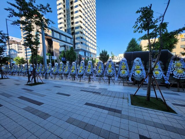 3일 오전부터 하이브 사옥 주변에는 프로미스나인의 팬덤에서 진행하는 근조화환, 트럭 시위가 진행 중이다.
