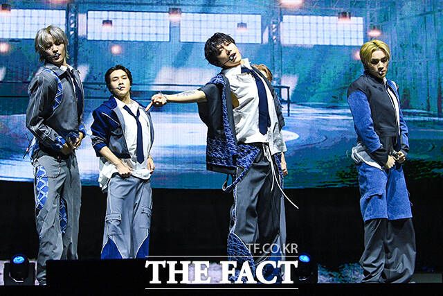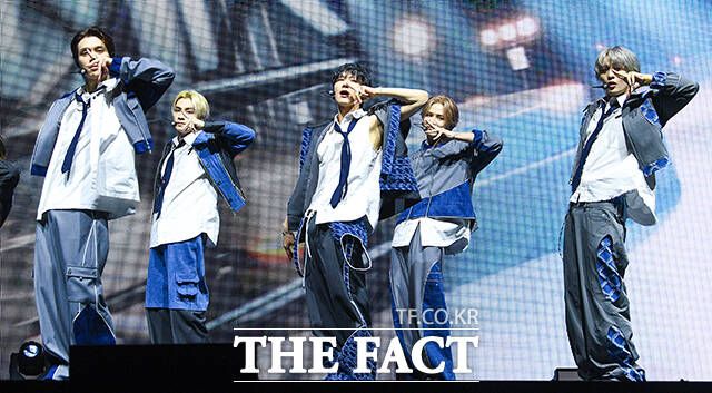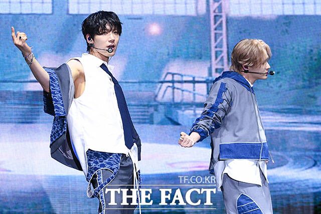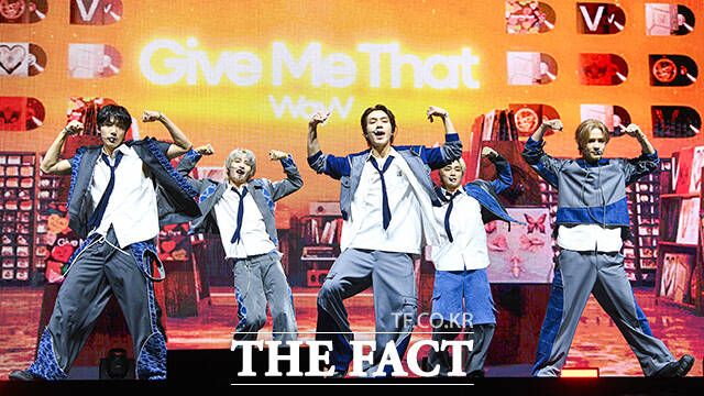 [더팩트ㅣ서예원 기자] 그룹 WayV(웨이션브이)가 3일 오후 서울 용산구 블루스퀘어 마스터카드홀에서 열린 다섯 번째 미니앨범 'Give Me That(기브 미 댓)' 발매 기념 쇼케이스에서 타이틀곡 'Give Me That' 무대를 펼치고 있다.