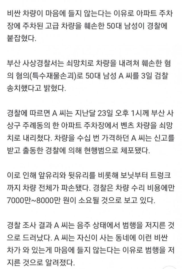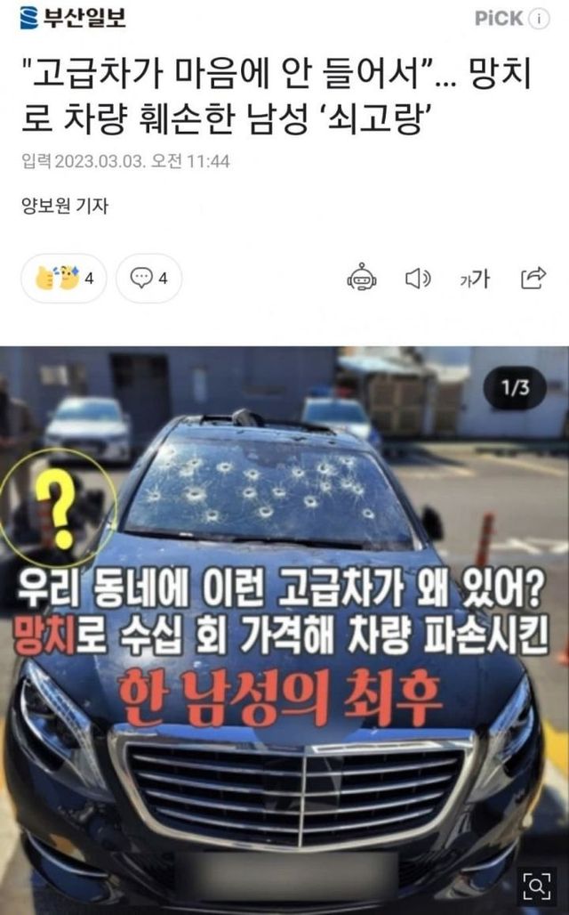 그냥 고급차보고 빡쳐서 때려부신거였음 ㄷ