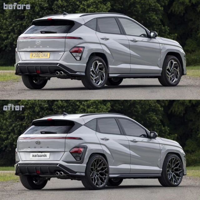 눈길을 끄는 부분은 렌더링 속 코나의 후면에 스포티한 듀얼 배기구가 장착됐다는 점이다. 배기구는 크고 새로운 휠과 함께 보다 공격적인 모습을 보여준다.
