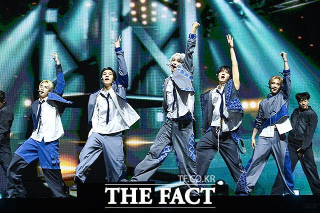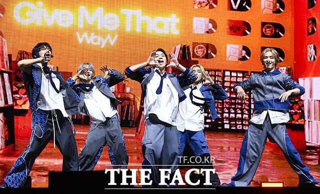 그룹 WayV(웨이션브이)가 3일 오후 서울 용산구 블루스퀘어 마스터카드홀에서 열린 다섯 번째 미니앨범 'Give Me That(기브 미 댓)' 발매 기념 쇼케이스에 서 타이틀곡 'Give Me That' 무대를 펼치고 있다. /서예원 기자