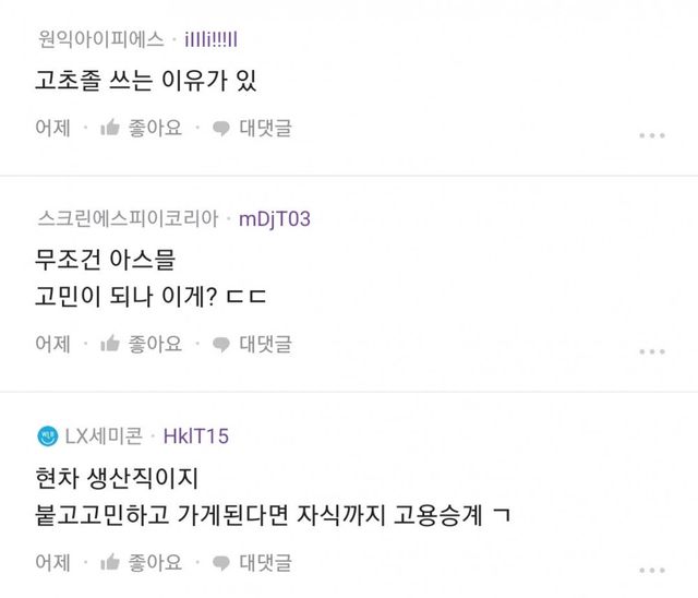 참고로 반도체쪽은 대기업 갑질(삼성 sk) + 24시간 공장풀가동 + 방진복으로 인한 탈모 등등 대학나와도 엄청 굴러야함