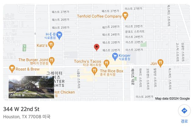 저 주소Address:344 W 22nd St., Houston, TX 77008를 복사해서