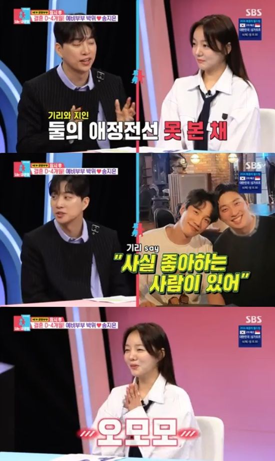 박위는 "기리 형을 통해서 지은이랑 제가 가까워졌다"며 "정작 저는 기리 형이 지인 누나와 만남을 갖거나 좋아하는 관계인 걸 모르고 기리 형에게 여자 소개하려고 2번이나 그랬다"고 털어놨다.