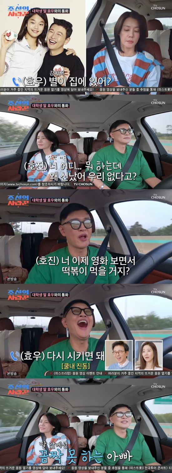 또 김호진과 김지호는 딸 김효우 씨의 사진을 공개했고, 전화 통화를 하기도 했다. 김호진은 "너 뭐 하는데. 우리 없다고 신났냐. 영화 보면서 엽떡 먹을 거지. 엽떡 버렸다"라며 장난을 쳤고, 김효우 씨는 "다시 시키면 돼"라며 쿨한 면모를 과시했다.