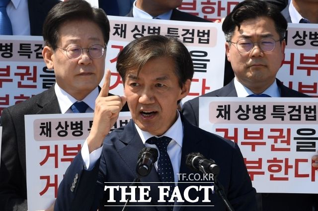 조국혁신당은 양당 기득권 타파를 위해서는 교섭단체 '20석' 요건을 완화해야 한다고 주장한다. 사진은 조국 조국혁신당 대표가 지난달 21일 오후 서울 여의도 국회 본관 앞 계단에서 열린 '채 상병 특검법 재의 요구 규탄 야당·시민사회 공동 기자회견에서 발언하는 모습. /남윤호 기자