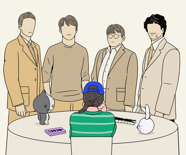 케이팝 관련 프로그램 제작팀에서 일하는 D에 따르면 케이팝이란 ‘엔터 고연차들의 집합 창작물’이다. 그는 매니저, 실장, 대표 등 높은 직책에서 오래 일한 이들이 공유하는 의지와 연대감이 외부에서 생각하는 것보다 훨씬 크다고 말했다. 최근 엔터테인먼트 회사로 직장을 옮긴 E 역시 그들의 결속력이 ‘상당한 수준’이라 뒷받침하며 이렇게 말했다. “사람이 빨리빨리 교체되는 산업이다 보니 고연차 직원에 대한 신뢰가 대단해. 함께 동고동락한 사람들과의 관계도 돈독하고. 사실상 중요한 의사결정은 이 사람들이 다 하지.” 유영석, 이수만 시절을 생각해보자. 사실 케이팝은 한땀 한땀 공들여 만드는 기존 기획사 고연차 작곡 장인들의 아틀리에에서 탄생했지 않나. 한국을 대표하는 기획사 대부분이 유명 가수, 프로듀서들의 회사고 그들의 영어 약자를 기업 이름으로 삼고 있다는 점이 이를 증명한다. E는 그 역사의 계승자로 민 대표를 지목했다. “케이팝의 잔다르크지.”