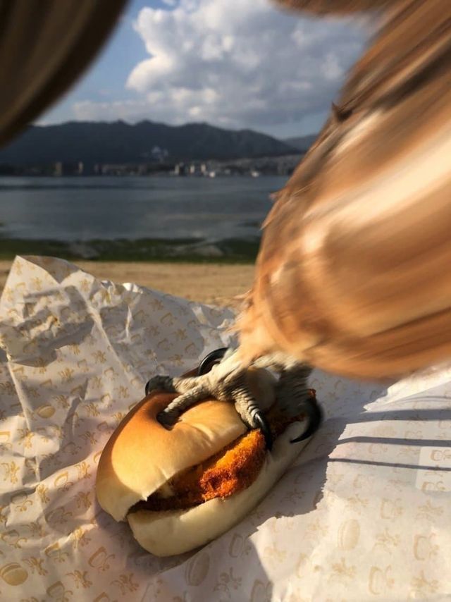풍경 즐기면서 먹으려고 꺼내자마자 입구컷당함