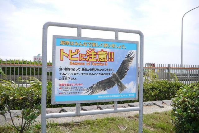 섬에 가보면 이런 솔개 주의 표지판이 있다