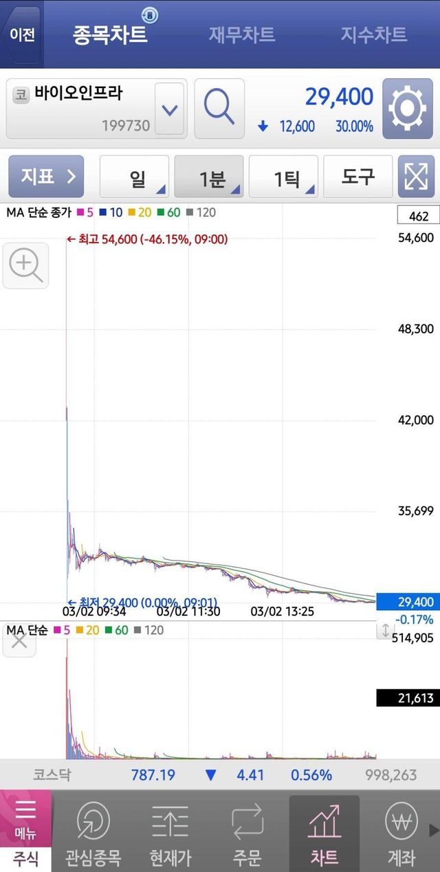 장시작에 상쳤다가 하한가로 마감 ㄷㄷ