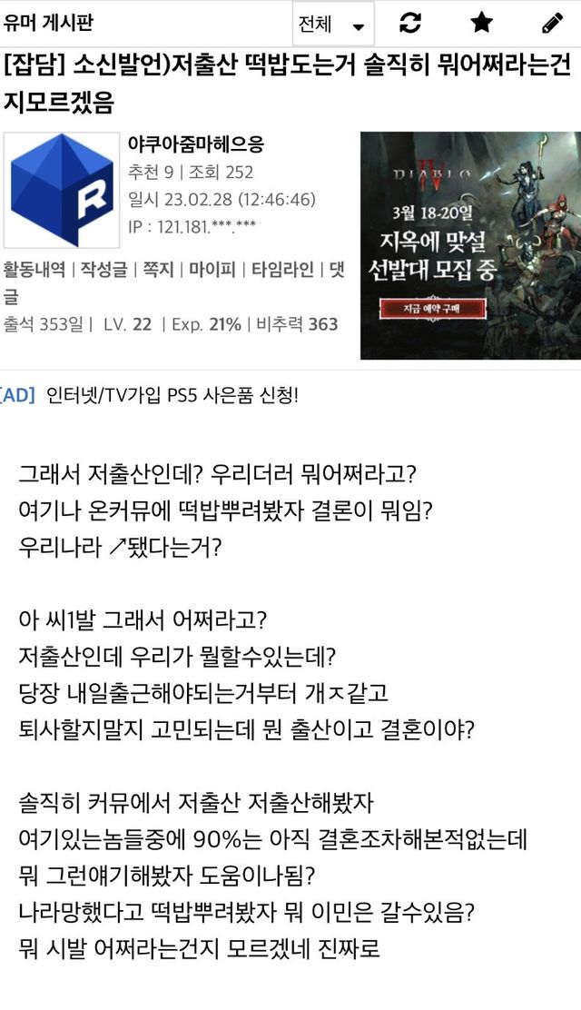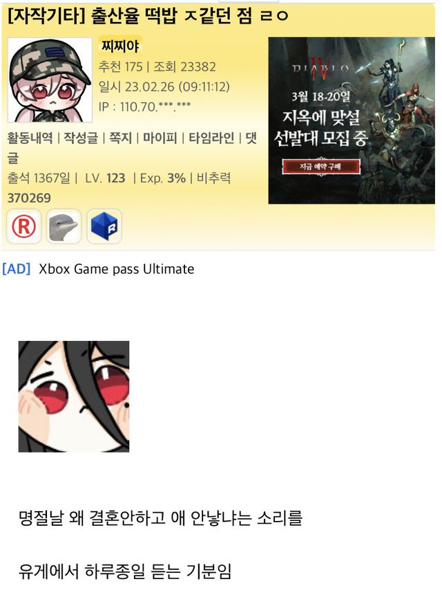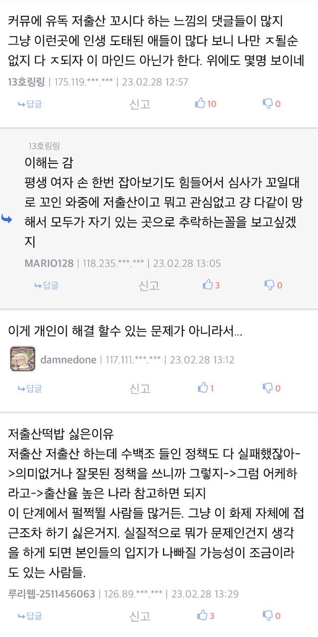 (자기의) 미래에 누구보다 오들오들 잘 떠는 사람들이 저런 글을 자주 남기고 반응을 태우는 경향이 있는듯