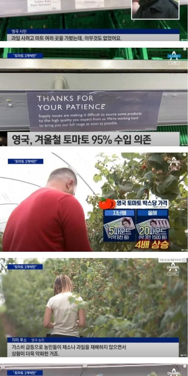 – 급등한 가스비로 인해 자국내 농민들이 채소와 과일을 재배 X