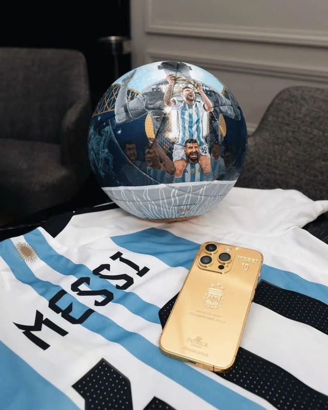 선을 비롯한 영국 매체들은 2일 “메시가 카타르월드컵 우승을 함께 이끈 동료들과 스태프를 위해 24K 금으로 표면을 도금한 최신형 아이폰을 제작했다”면서 “해당 스마트폰엔 각 선수들의 이름과 등번호, 아르헨티나축구협회 엠블럼이 새겨져 있다”고 보도했다.