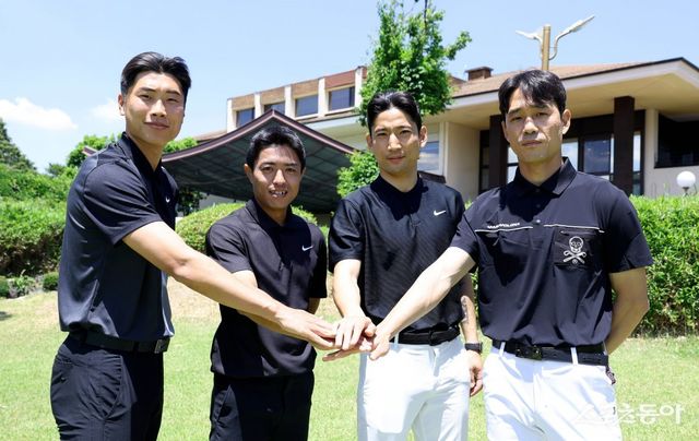 대한축구협회, 한국프로축구연맹, 울산 HD, 포항스틸러스가 주최하고 스포츠동아, 스포츠경향, 스포츠서울, 스포츠월드, 스포츠조선, 일간 스포츠 등 스포츠전문 미디어 6개사가 후원하는 ‘2024년 축구인 골프대회’가 3일 경기도 용인 골드CC에서 개최됐다. 전남 고태원, 포항 백성동, 제주 정운, 울산 박주영이 기념 촬영을 하고 있다. 용인 | 주현희 기자 teth1147@donga.com