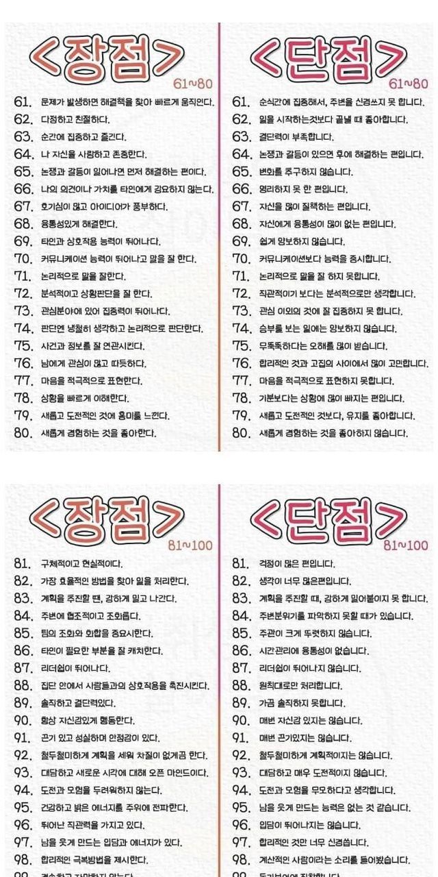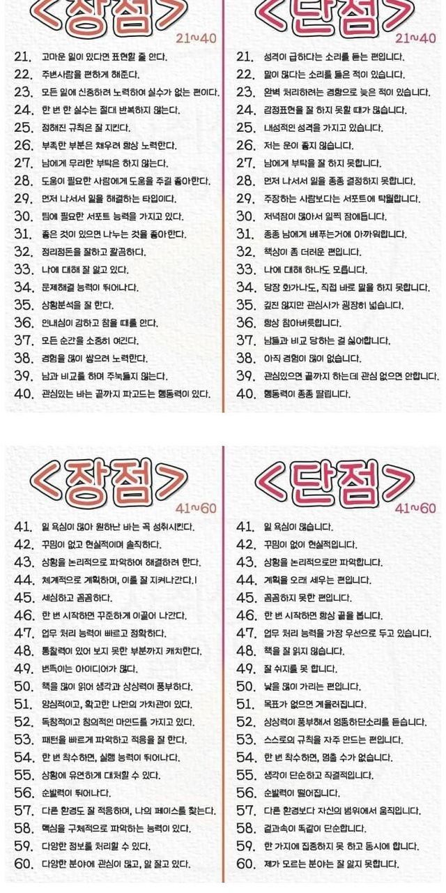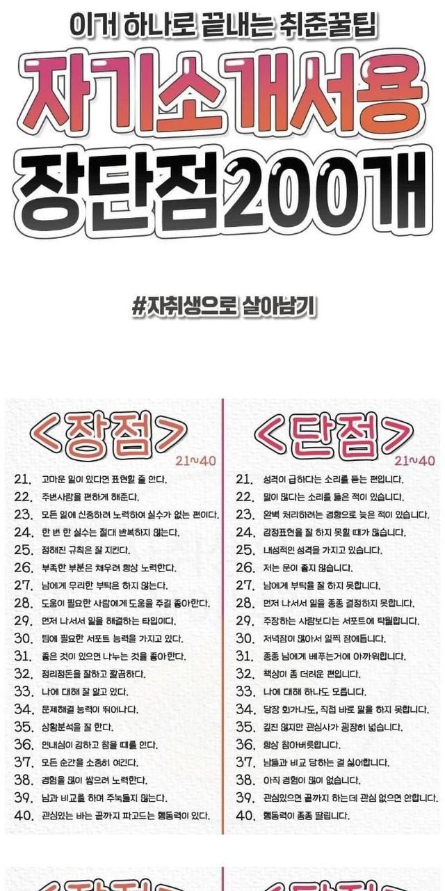 취준생 필독.. 자기소개서용 장단점 200가지 …