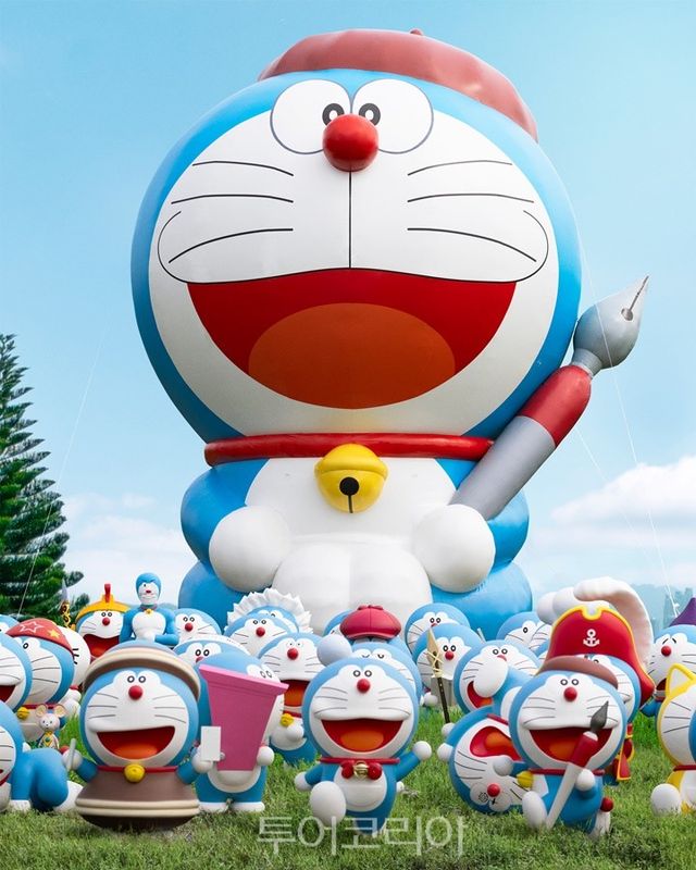 전시에는 만화 속 도라에몽 세계를 완벽하게 재현해냈다. 실내 전시실(100% Doraemon Manga Art Exhibition Hall)에는 참여형 인터랙티브 설치물과 영상들, 17개의 도라에몽 조각품을 전시한다. 야외 조각공원(100% Doraemon Sculpture Park)에서는 이전에 공개된 적 없는 36개의 다양하고 독특한 도라에몽 조각품들을 만나 볼 수 있다.