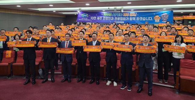 제주특별자치도관광협회는 이날 오전 국회의원회관에서 강동훈 제주특별자치도관광협회 회장과 제주 지역 위성곤·김한규·문대림 더불어민주당 국회의원, 한준호·문진석 민주당 의원, 천하람 개혁신당 원내대표 등이 참석한 가운데 APEC 정상회의 제주 유치 기원하는 퍼포먼스를 진행했다.