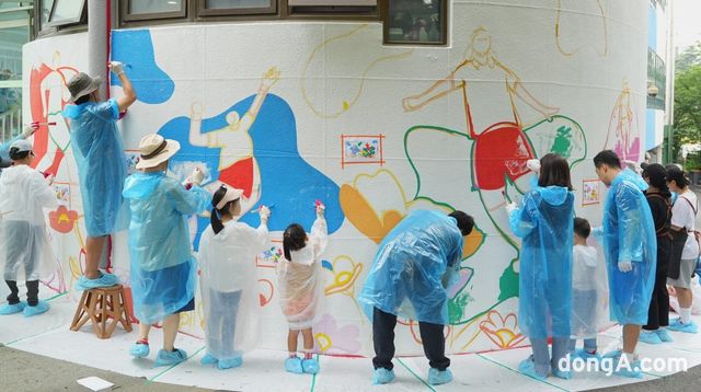 지난 1일 봉사활동에 참여한 100여 명은 용인과 대전 2개 지역으로 나뉘어 초등학교 건물 내벽에 밑그림 그리기와 채색을 비롯한 벽화 작업을 진행했다. 해당 작업을 통해 완성된 벽화는 하나의 미술 작품으로 탈바꿈하며, 낡은 벽면에 온기를 더했다.