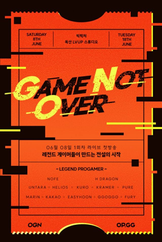 지난달 23일 제작 발표회를 개최한 '게임 낫 오버'는 오는 8일 오후 6시 OGN 유튜브 라이브에서 첫 매치를 진행한다. OGN은 이를 통해 e스포츠의 미래를 밝히고 새로운 역사와 추억을 만들어 나갈 계획이라고 전했다.