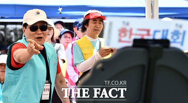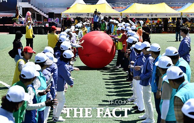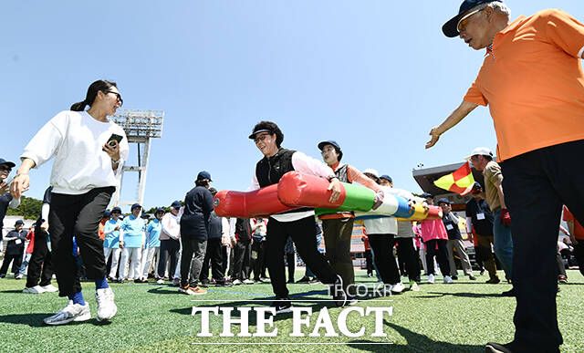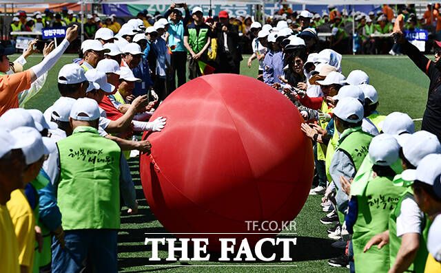 [더팩트ㅣ박헌우 기자] '제24회 시니어올림픽'이 4일 오전 서울 용산구 효창운동장에서 열린 가운데 대회에 참가한 어르신들이 경기를 즐기고 있다.