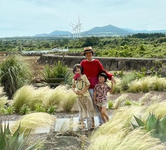 공개된 사진 속 김나영은 두 아들과 함께 제주도를 방문한 모습이다.