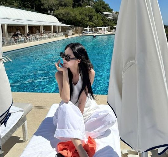 공개된 사진에서 한예슬은 럭셔리한 수영장을 찾아 포즈를 취하고 있다.
