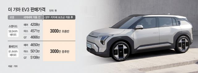 정원정 기아 국내사업본부장(부사장)은 "차급을 뛰어넘는 상품성과 합리적 가격의 EV3 국내 계약을 시작하며 고객들이 다양한 경험을 할 수 있는 이벤트를 지속적으로 시행할 예정"이라며 "이를 통해 그동안 전기차 구매를 주저한 고객들도 망설임 없이 EV3를 선택할 것으로 기대한다"고 말했다.