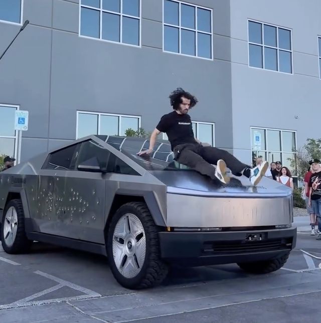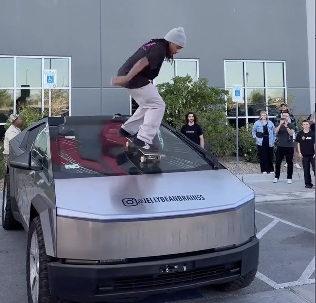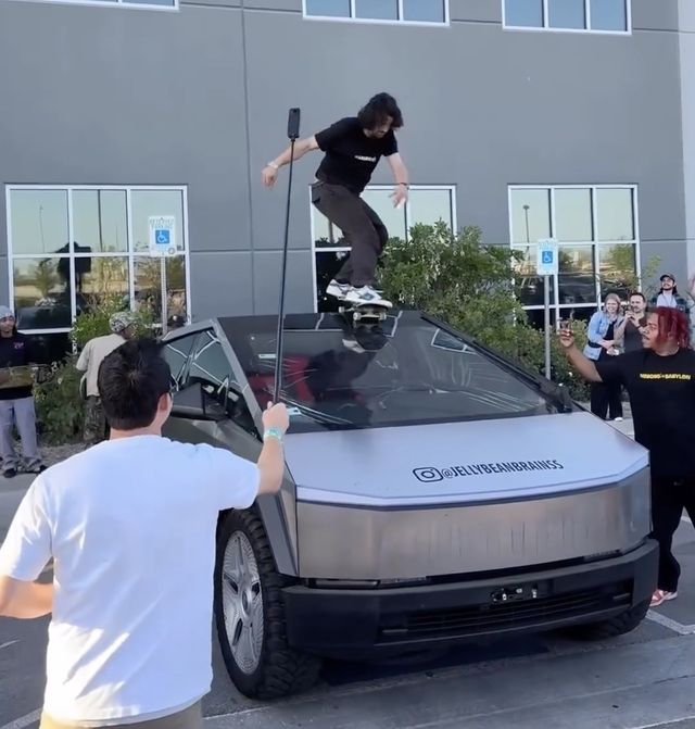 그러나 사람들은 사이버트럭을 계속해서 고문했다. 가장 최근에 실시한 테스트는 스케이트보드였다. 인스타그램에 업로드된 동영상에는 젊은이들이 스케이트보드를 들고 트럭 뒷좌석 커버 위로 올라가는 모습이 담겨 있다. 토너 커버는 최대 300파운드(136kg)까지 견딜 수 있다. 그들은 파노라마 선루프에 올라 앞유리창을 미끄러져 내려간다.