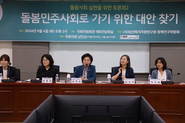 돌봄에 대한 논의가 확장되고 그 필요성과 중요성이 강조되면서 책임과 역할, 가치가 재정립돼야 한다는 목소리가 높아지고 있다. 이에 남인순 의원은 오늘(4일) 국회의원회관 제8간담회의실에서 ‘돌봄 민주사회로 가기 위한 대안 찾기’ 토론회를 개최했다.