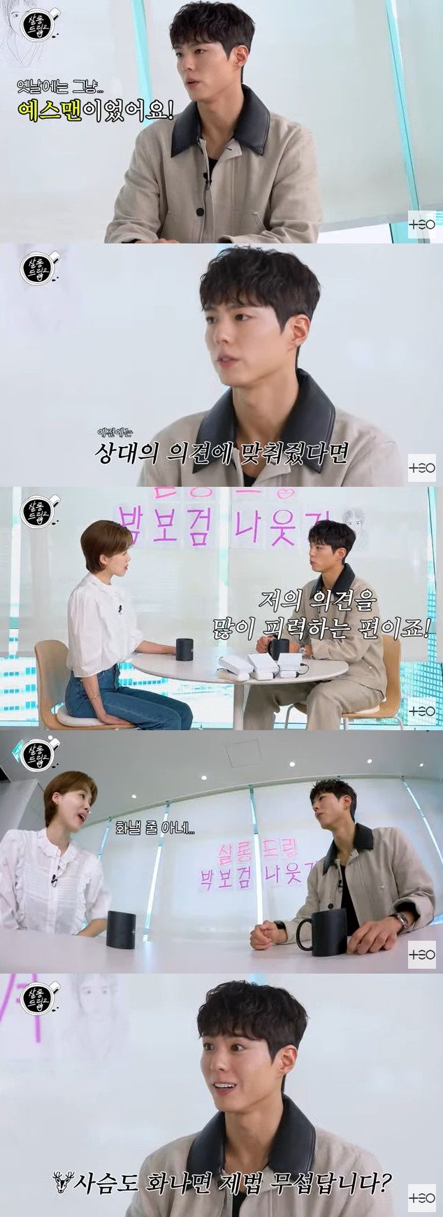 박보검은 "옛날에는 그냥 '예스맨'이었다. 내가 상대보다 덜 가져도 내가 손해를 봐도 그걸 손해본다고 생각 안 하고 이 사람이 편하면 나도 편하다고 생각했다. 예전에는 상대의 의견에 맞춰줬다면 이제는 저의 의견을 많이 피력하는 편이다. 좀 더 정확하고 분명하게 말하려고 한다"고 답했다.