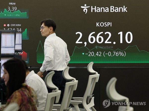 이날 코스피 종가는 전장보다 20.42포인트(0.76%) 내린 2,662.10으로 집계됐다.
