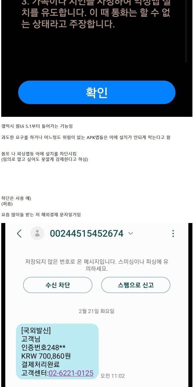 갤럭시 악성앱(보이스피싱&몸또) 차단 기능 탑재 …