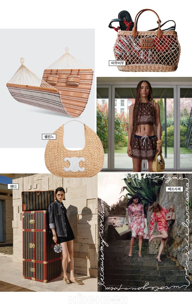 본격적인 여름을 맞이하기 전 패션 하우스들의 서머 컬렉션이 연이어 공개되었다. 시원한 소재와 디자인으로 완성한 셔츠와 스커트, 모자, 백, 슈즈까지 다채로운 카테고리의 아이템으로 가득하다. 셀린느는 에디 슬리먼이 애정하는 장소인 프렌치 리비에라와 생제르맹데프레에서 영감을 얻은 플랑 솔레이 컬렉션을, 베르사체는 그래픽 프린트를 풍성하게 담아낸 셔츠와 카디건, 스커트 등으로 구성한 2024 라 바칸자 컬렉션을 선보였다. 펜디의 캡슐 컬렉션은 로마의 홀리데이 무드를 그려냈다. 데님이나 레더 웨어는 물론 피카부백과 바게트백 등 제품 곳곳에 시그너처 페퀸 패턴을 새겨 여름 분위기를 담았다. 미우미우의 새로운 레떼 컬렉션에서는 비키니와 원피스, 프린트 스카프 톱을 포함해 크로셰 니트 소재의 완더백, 토트백, 리비에르 샌들, 뉴발란스 X 미우미우 슈즈까지 다양한 아이템을 만날 수 있다.