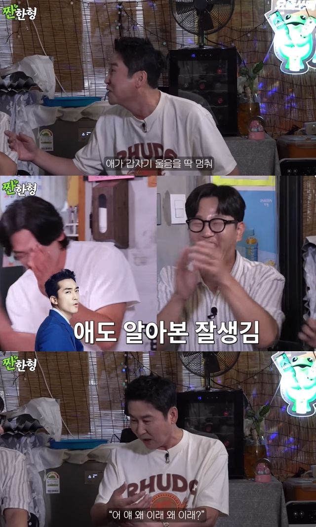 그러나 딸의 울음은 송승헌을 보고 멈췄다고. 신동엽은 "승헌이가 와서 '아이고' 이러고 눈을 맞췄는데 딸이 갑자기 울음을 딱 멈췄다. 새침한 척을 하더라"면서 "민정 씨도 당황했는지 '얘기 왜 이래?'라고 하더라"고 덧붙여 웃음을 자아냈다.