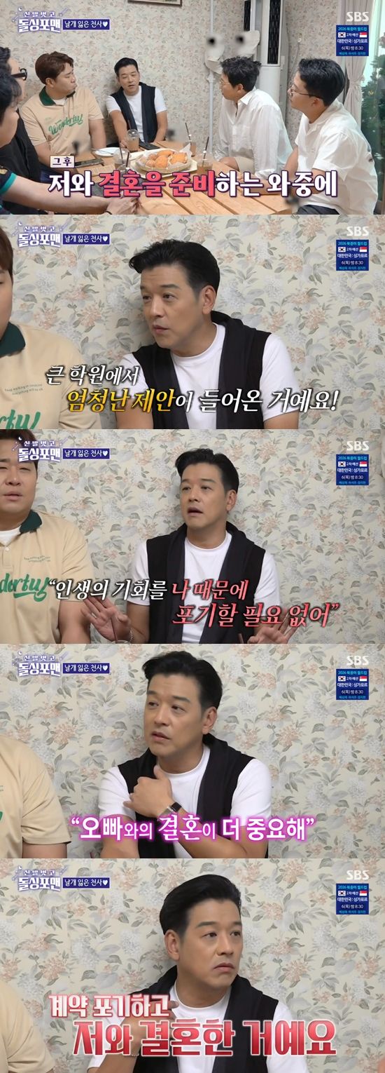 류시원은 "아내가 중학교 수학 선생님이었는데 1년 해 보더니 안 맞는 것 같다며 대치동 강사가 됐다. 나와 결혼을 준비하는 와중에 큰 학원에서 엄청난 제안이 들어왔다"고 밝혔다.