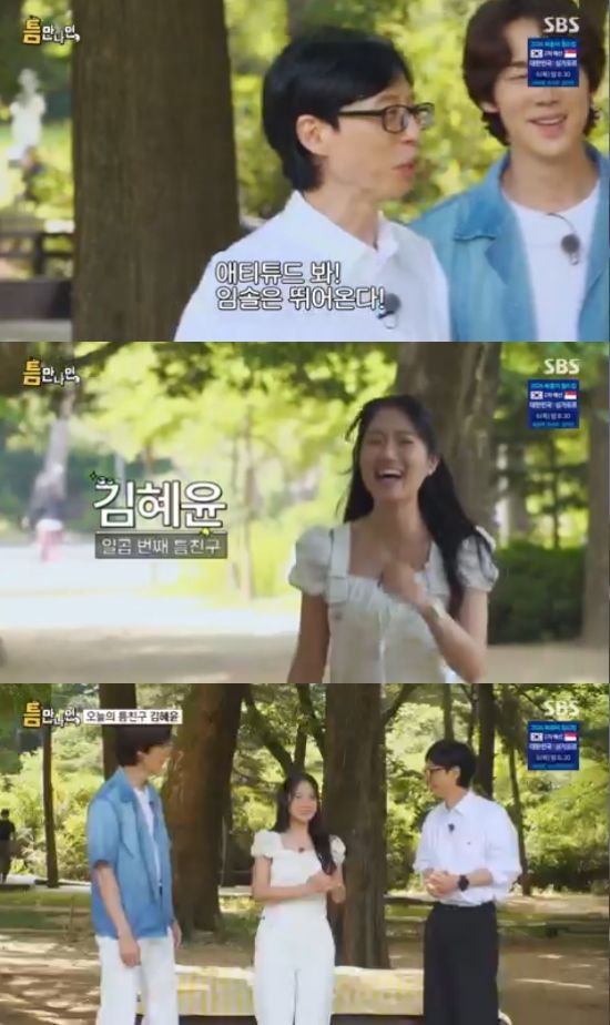 4일 방송된 SBS 예능 프로그램 '틈만 나면'에는 배우 김혜윤이 '틈 친구'로 출연해 유재석, 유연석과 함께 틈새 행운을 전했다.