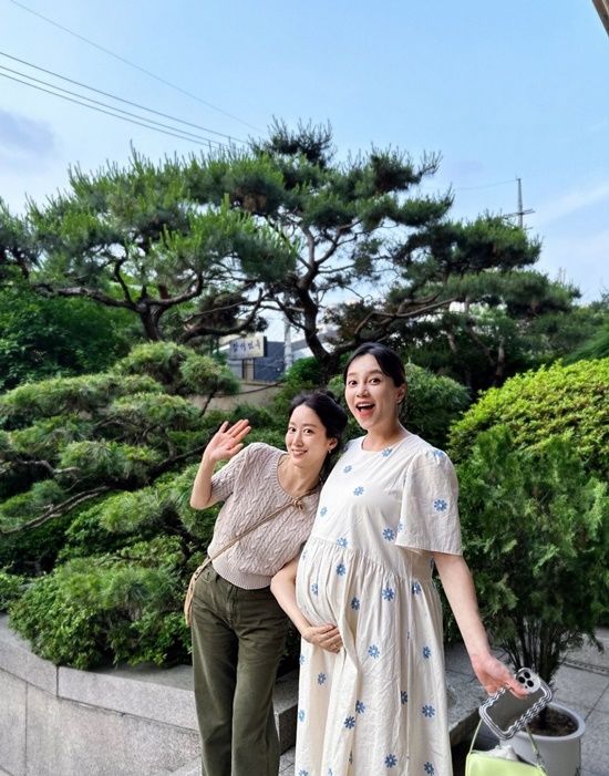 공개된 사진 속 전혜빈은 만삭인 아유미와 함께 야외에서 활짝 웃으며 포즈를 취하는 모습이었다. 아유미의 완벽한 D라인이 네티즌들의 이목을 끌었다.