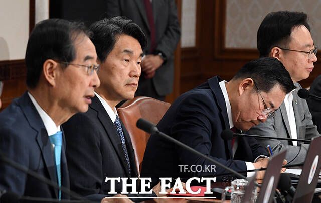 정부는 4일 서울 종로구 정부서울청사에서 열린 국무회의에서 9·19 군사합의 전체의 효력을 정지하는 안건을 의결했다. 사진은 이날 국무회의에 참석한 신원식 국방부 장관이 한덕수 국무총리의 발언을 들으며 메모하는 모습. /임영무 기자
