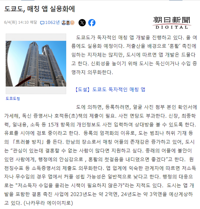 최근들어 일본 어플로 만나서 결혼하는 커플 비율이 20% 가까이 되나보니