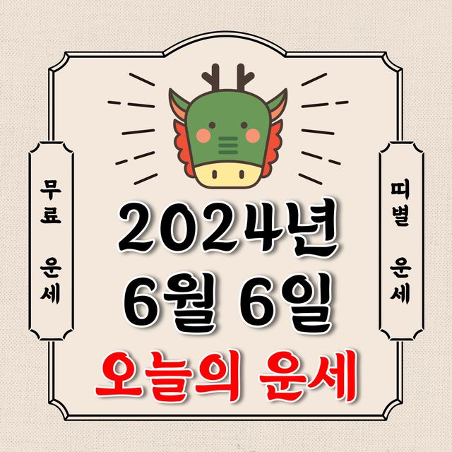 오늘의 운세 2024년 6월 6일 목요일 (음력 5월 1일 / 띠별 운세 / 생년월일 운세)에 대해 알아 보겠습니다.