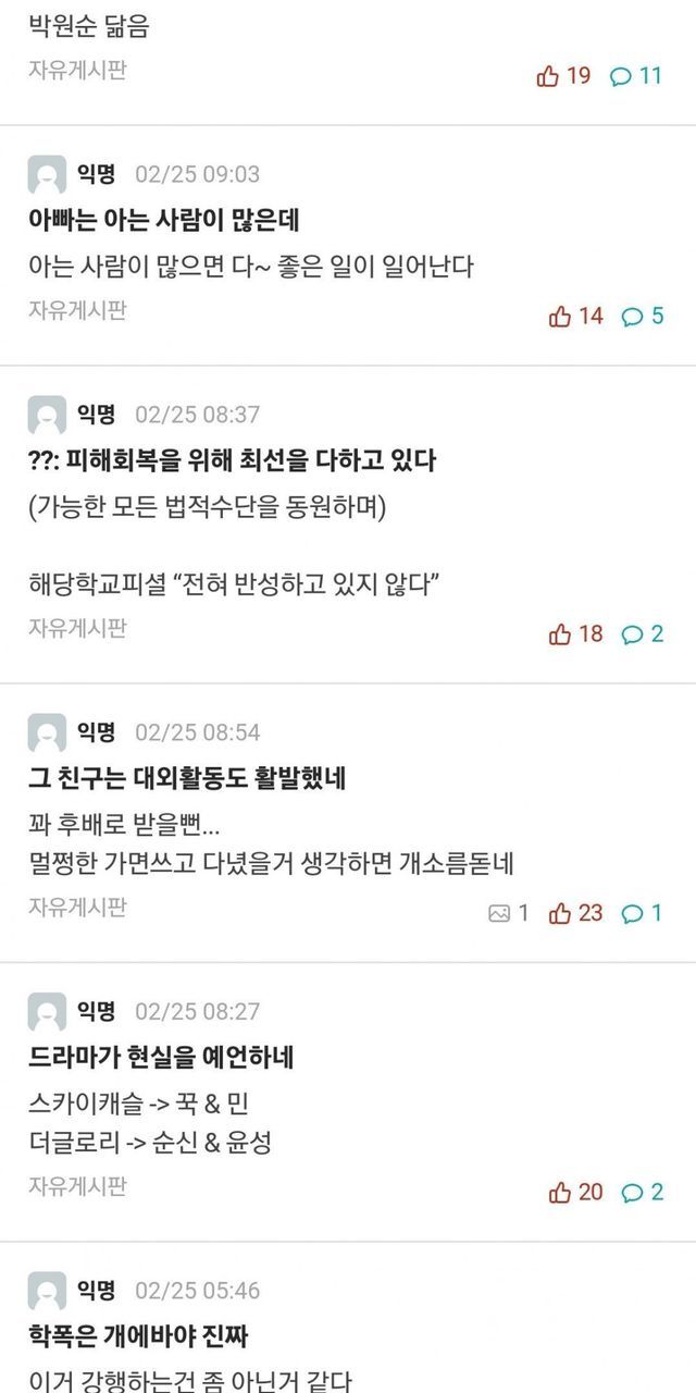 핫게시판 두페이지 내내 가해자 얘기만 올라옴. 역대급 분노게이지